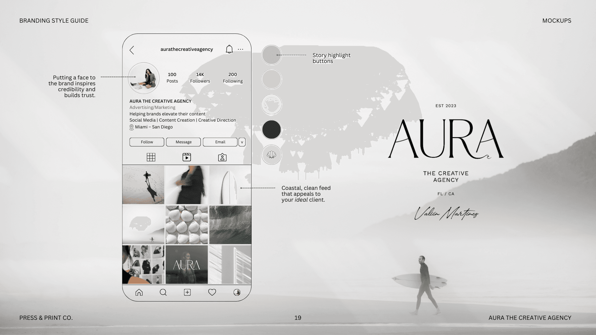 Elevated Aura Agency’s brand, crafting minimal and organic social media content that blends creativity, authenticity, and strategic impact across bi-coastal markets.